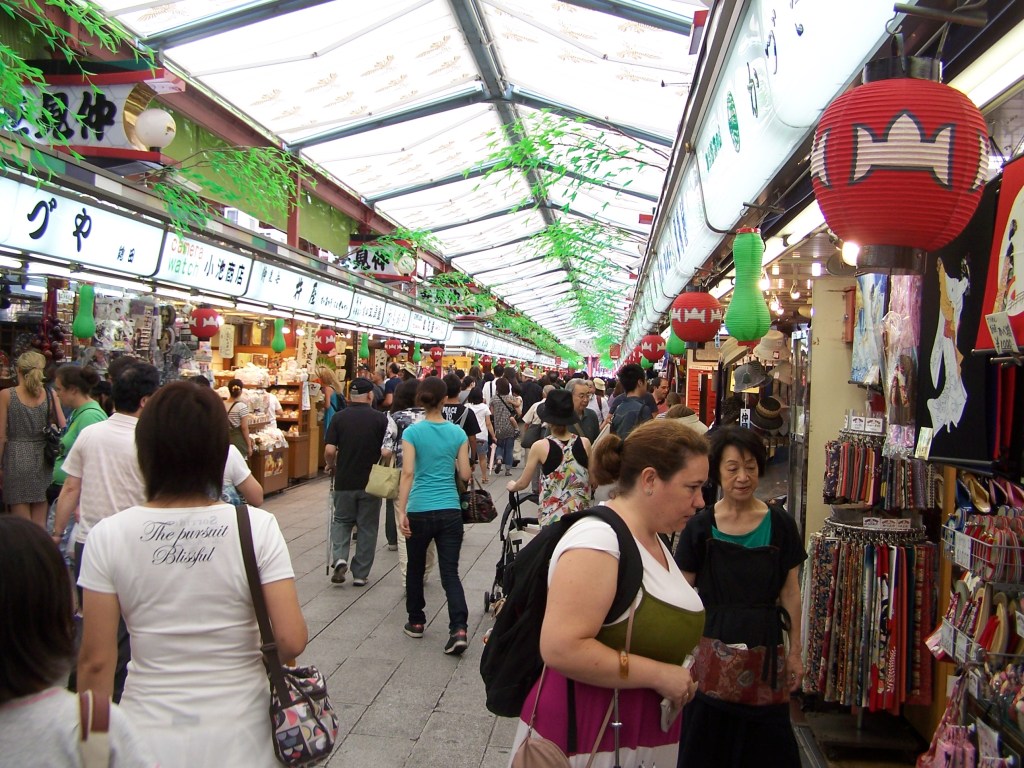 La idea era hacer turismo cultural por la mañana y comercial por la tarde. Hemos ido a primera hora (quien dice «primera hora» dice «mas o menos las 11 y media de la mañana») a ver templos a un barrio llamado algo así como «Akasuka» (¿o era «Akusika»?, no consigo acordarme y no tengo el mapa a mano…), y allá que nos hemos ido con nuestro estupendo dominio del metro local (ya sabeis, nosotros los de Tokyo no tenemos ningun problema en movernos en trasportel público), para descubrir un barrio entero lleno de tiendas de souvenirs de camino a los templos. Ya os podeis imaginar: adios al turismo cultural. Dos horas de tienda en tienda, al menos he conseguido mi pin de Tokyo. No os cuento lo que ha comprado Elena porque no hay palabras… Al final hemos estado 10 minutillos viendo monumentos, que para la media que llevamos no está mal.