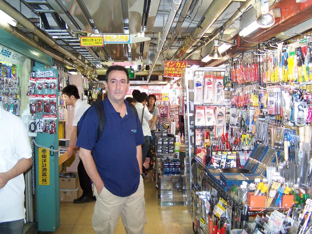 Total, que nos hemos ido al barrio electrónico. Flipante. Una calle del tamaño de la Gran Via (y no exagero) dedicada en exclusiva a la electrónica, con edificios de 6 plantas uno detrás de otro. Alternan tiendas de manga guarrillas, petadas de frikis hojeando comics. (Adolfo, me he acordado mucho de tí cuando nos hemos metido en callejones llenos de tiendecillas de electricidad de las que te molan: vendían los componentes al detalle, resistencias, condensadores, multi testers, grimpadoras espaciales, corta cables llenos de números, cables de utilidad misteriosa… He curioseado en una de emisoras de radio increíble, te hubiera encantado el rollo «mercadillo electrónico subterraneo»…lo único que hemos comprado allí han sido pilas) Al final, y cerca de la saturación, me he comprado unos auriculares en un gran almacén de los de no dar crédito: Solo la sección de cascos y auriculares tenía el tamaño del Media Markt de Majadahonda. Elena ha descubierto la sección «Hello Kitty» de otra tienda y ya me niego a detallar lo que se ha llevado. Paso.