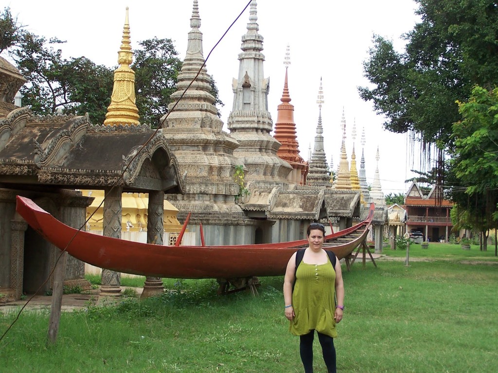 Ahora, lo que el amigo Thie (que poco a poco va cayendo mejor) nos ha enseñado despues me ha parecido tremendo: Un templo (aquí «templo» debe entederse como «complejo de edificios religiosos», incluye el templo propiamente dicho, un cementerio y unas cuantas estatuas de buda en diversas posturas de meditación, todas ellas transmitiendo gran sensación de paz y serenidad) al que no van turistas bastante espectacular. La foto adjunta correponde al cementerio, frente al cual puede apreciarse una típica barca ceremonial de las que se usan para celebraciones diversas. Por supuesto, como en todo templo budista que se precie, tambien había unos cuantos monjes que se han limitado a levitar por el jardín ignorándonos por completo a nosotros, pobres materialistas esclavizados en una vida vacía y oscura… Durante el regreso, he intentado acercarme un poco al estilo de vida del monje budista y me he echado la siesta sobre la cubierta superior del barco, eso sí, meditando profundamente sobre la vida y su sentido