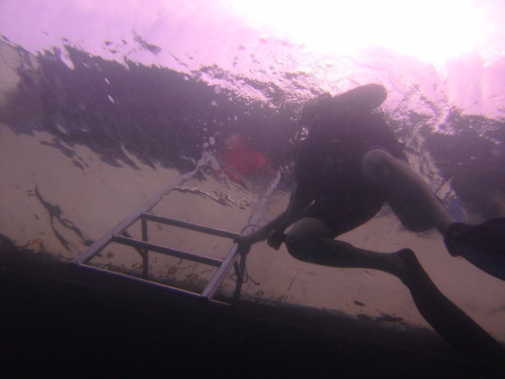 Esta mañana se han marchado nuestros compañeros de buceo habituales Eugenio y Paula, (a quien mando un saludo porque han prometido leer el blog) así que nos han llevado con la tropa. Eso sí, con guía exclusivo para nosotros dos. El resto de día os lo podeis imaginar, una emoción… Nos hemos sentado en el bar de la piscina a tomar cervezas desde las 5 de la tarde, y hasta las 8 que hemos cenado. Algo de interacción con el resto de turistas, porque este es un hotel muy pequeño y acabas conociendo (al menos la nacionalidad) de la mayoría, así que tampoco te vas a poner borde. Hasta me he tragado un buen rato de videos de buceo que me ha enseñado un francés muy pesado que se ha hecho muy amigo nuestro. Yo he conseguido librarme despues de unos 20 minutos, pero es que los suizos que se sientan a nuestro lado en el desayuno seguían viendo los videos del francés dos horas despues…