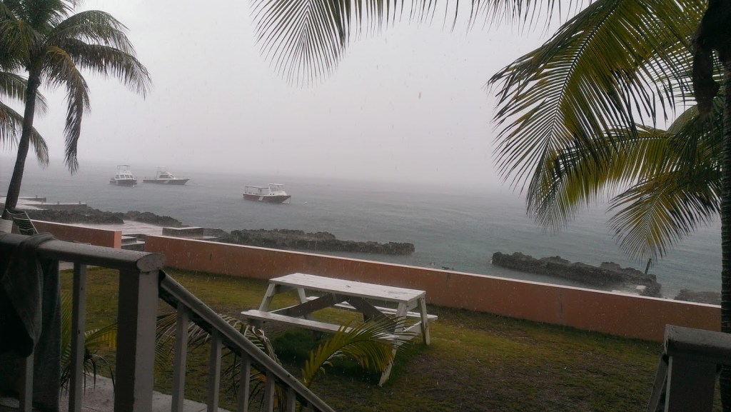 Vayamos con la crónica diaria. Hoy no habrá relatos de hazañas submarinas (hemos visto un tiburón dormido debajo de unas rocas) ni lamentos fotográficos (todas las fotos salen azules) porque – no nos engañemos- no le interesan a nadie-. Al volver del agua ha empezado a llover, y durante tres o cuatro horas el trópico nos ha castigado con una ducha inclemente de gotas como garbanzos. Al menos ha refrescado un poco del insoportable calor habitual…