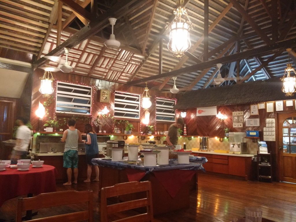 Aprovechemos la foto del comedor de arriba para rellenar rápidamente la obligatoria reseña gastronómica. El resumen rápido: Una mierda como un piano. Todas las comidas son de buffet libre, aunque yo mas bien diría buffet esclavo, porque no hay mas que dos o tres opciones y todas francamente lamentables. Menos mal que dan arroz en abundancia, ese tipo asiático que Elena llama «encastrado», esto es, apelotonado y pegajoso que, sorprendentemente está bastante bueno y sirve para engañar al estómago…