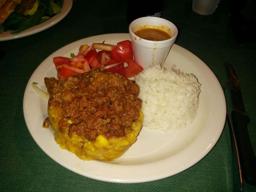 A mediodía comimos en un bonito y pintoresco restaurante típico, mi segundo mondongo mofongo seguido, que es un cuenco hecho con pasta de plátano macho frito relleno de carne, bastante bueno. Elena ya no sabe qué hacer ni que decir para que no le pongan cilantro en la comida, que aquí se lo echan hasta en el café con leche. Ha pasado de pedirlo por favor a decir que es alérgica y hoy jura que va a usar las amenazas, a ver si lo consigue.