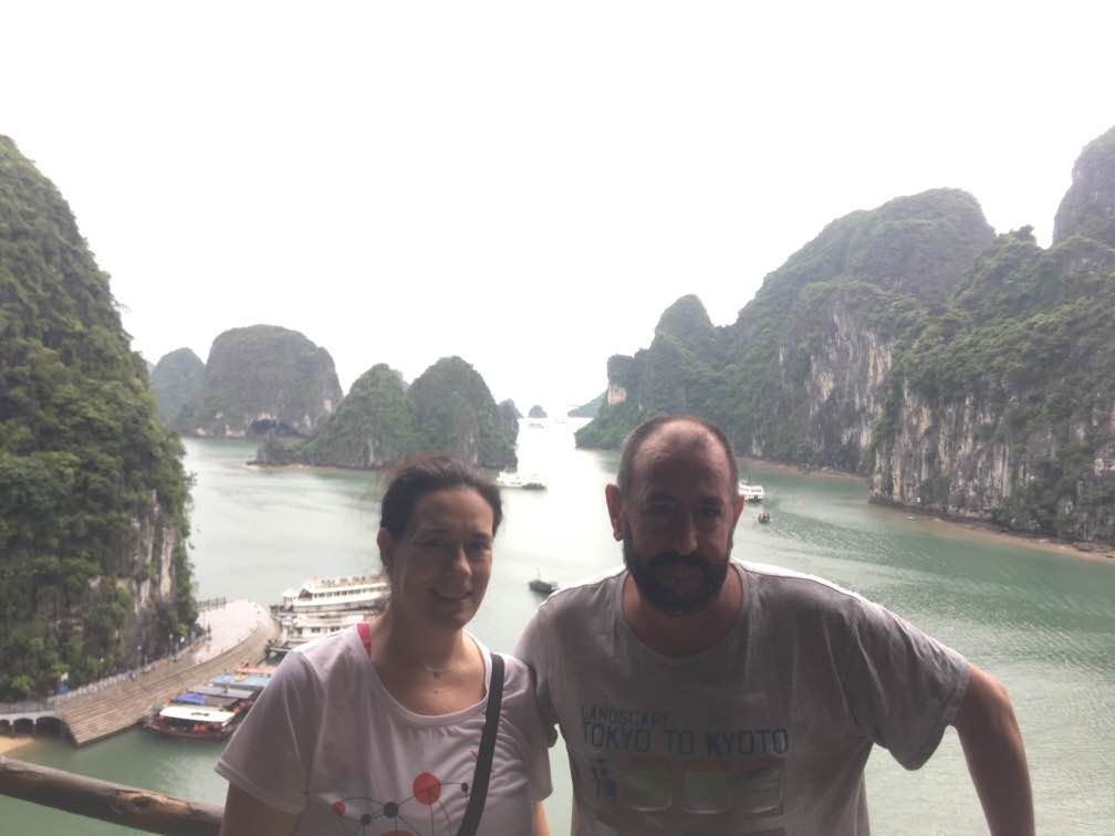 Tras una noche de sueño soprendentemente buena (teniendo en cuenta la escasa comodidad del camarote, y el tormentón de rayos, truenos y centellas que nos cayó encima) nos despertamos a las 6, para desayunar a las 6 y media y estar listos a las 7 para las actividades de la mañana. Disciplina militar la del amigo Louis, y todo porque había aviso de tormenta (de las buenas, no los fuegos artificiales de por la noche) y el gobierno, en ese caso, obliga a todos los barcos de turistas a estar en el puerto a las 11 de la mañana. Así que nos enseñaron una cueva mas (esta mejor equipada con caminos practicables) en lo alto de una escalera de no se cuántos cientos de escalones, y un mirador en una isla llamada Ti-To en honor del segundo hombre en el espacio, el ruso Titov que visitó Vietnam en los años 60 como parte del programa de amistad (ejem) entre los dos paises. El mirador de la isla Titov está a una altura absurda, al final de una cantidad de escalones que es un despropósito. A mitad de camino me he quedado, no os digo mas…