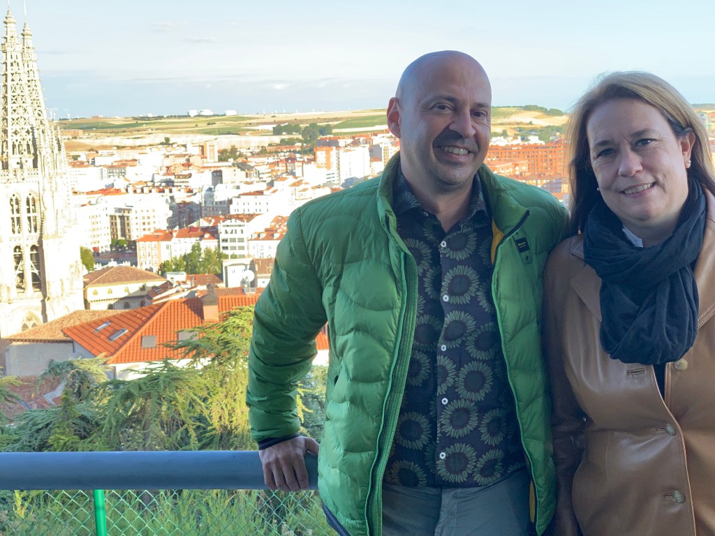 Después de la visita volvimos al hotel porque las maletas aún estaban en el coche, subimos el equipaje a la habitación y hablé con mi compañero de trabajo Iván, que es «nativo» de Burgos, quedamos con él a las 20.00, nos pasó a buscar en su coche por el hotel y nos llevó primero al Castillo, desde donde hay una vista preciosa de todo Burgos,