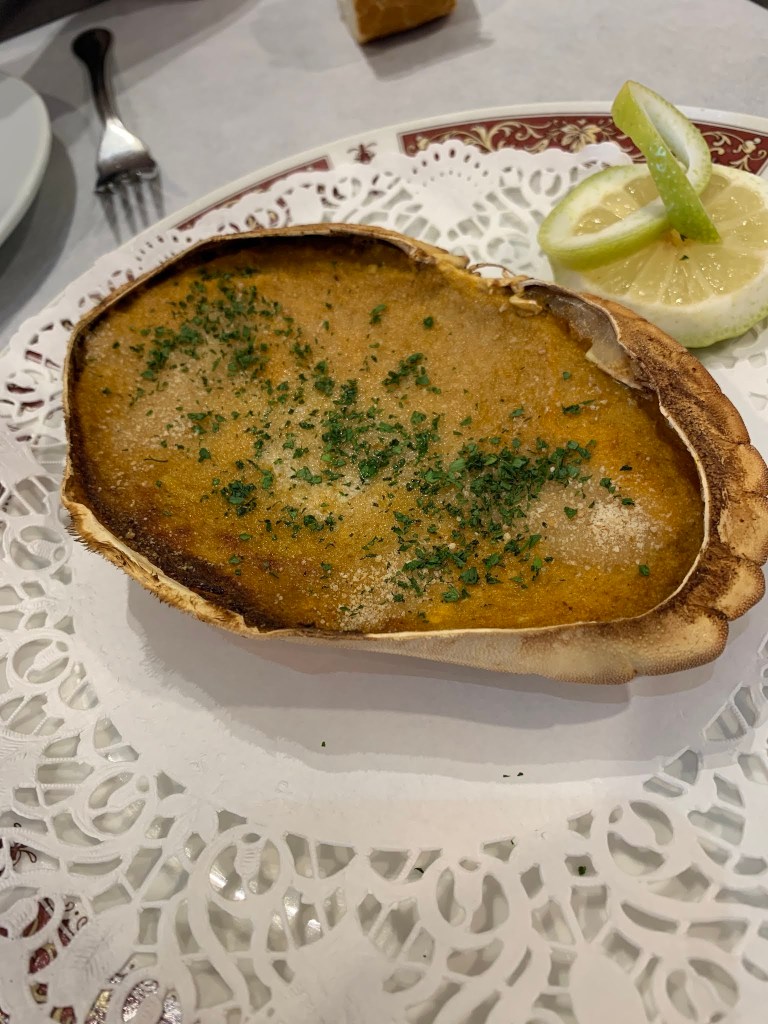 Después de abrir boca, nos encaminamos al restaurante Casa Antón que está al final del puerto… la «típica tabernilla de pescadores» donde con una botellita de Txakolí bien frío nos comimos de entrante un txangurro cuando nos lo trajeron no era una centolla, sino que era un buey de mar, y es que resulta que el txangurro no es sólo de centolla, sino que también lo hacen de buey y es lo mismo según la señora del Antón.. qué cosas, lo que se aprende viajando! de segundo nos tomamos un rodaballo a la parrilla con una lechugilla, que estaba de rechupete.