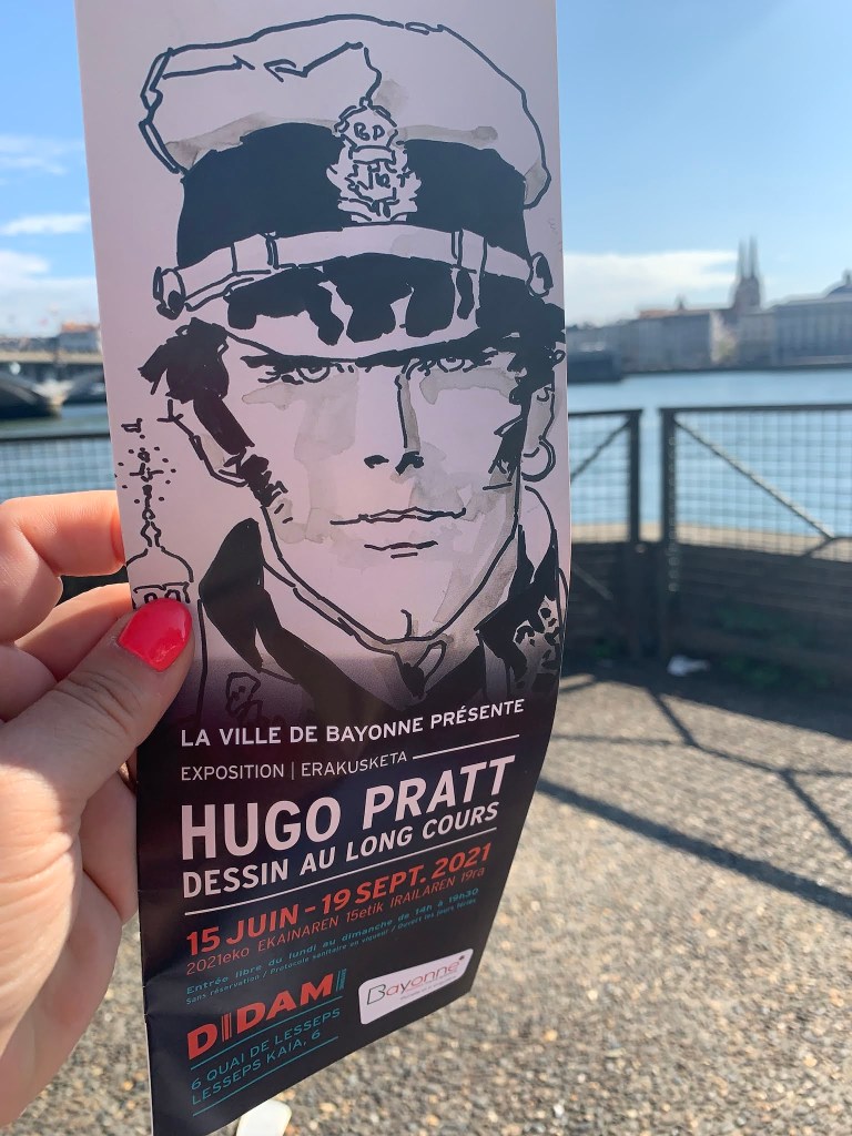 Para acabar la sobremesa nos acercamos a ver una exposición sobre Hugo Pratt, autor de El Corto Maltés, entre otros, que le encanta a Julio y para llevarle el folleto de la exposición que lo cogimos en francés, porque la otra opcion era euskérico y eso si que no hay quien lo entienda….