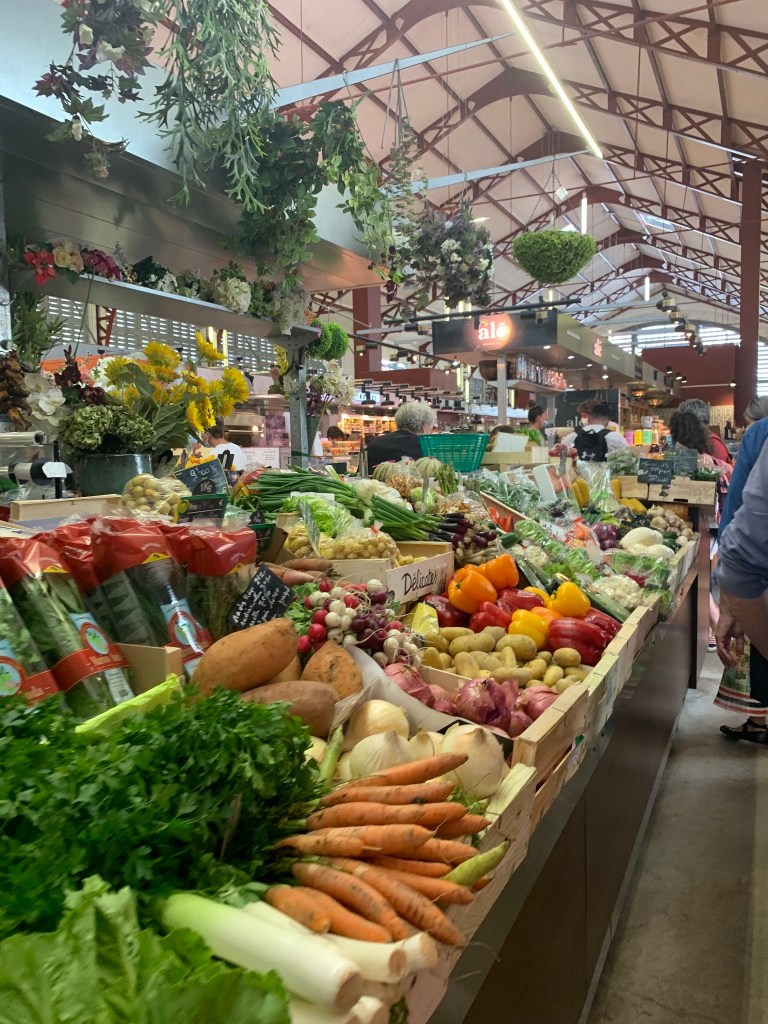 Seguimos paseando hasta el mercado, Les Halles, que es un espacio cerrado en lo alto de la ciudad (porque vaya cuestas tiene Biarritz, ríete tú de San Francisco, aquí no hacen persecuciones de coches porque no caben por las calles por culpa de los «cienes» de personas que hay..) en el mercado de Les Halles hay de todo desde frutas, verduras, quesos, productos autóctonos y aparentemente de muy buena calidad. Los expositores tenían un aspecto estupendo, muy apetecible todo.