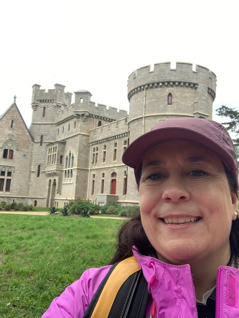 Después de comer, mirando en internet, encontramos un sitio en Hendaya que nos pareció curioso y para no llegar tan pronto al hotel de Astigarraga decidimos ir a visitarlo. Es el castillo observatorio de Abadía, no es como pensamos en un primer momento una abadía de monjes, sino que es un castillo. Según la Wikipedia, el castillo de Abbadie (en francés, Château d’Abbadia) es un château francés del siglo XIX, situado en la localidad fronteriza francesa de Hendaya. Fue diseñado por Eugène Emmanuel Viollet-le-Duc en un estilo neogótico entre 1860 y 1870, a petición de Antoine d’Abbadie d’Arrast, astrónomo y explorador, pero también antropólogo y lingüista, miembro de la academia de las Ciencias, que soñaba con un castillo observatorio de estilo gótico. Aunque no pudimos visitarlo por dentro porque estaba el cupo completo, sí que por 2 euros cada uno pudimos entrar a los jardines y verlo desde fuera, admirando las vistas hacia el mar y los acantilados. El castillo es hoy la propiedad de la «Academia de Ciencias», a la que Antoine d’Abbadie lo había legado en 1895, a condición de que el observatorio fuera dirigido por un sacerdote (eso no sabemos si es así o no porque curas por allí no vimos).