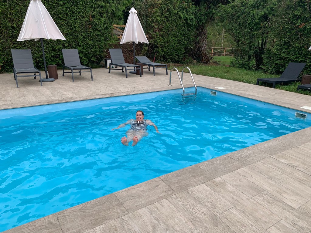 Una visita improvisada que nos gustó también mucho. Estuvimos casi media hora larga caminando por los distintos senderos de los jardines, gente humilde estos Abadía… y pusimos rumbo a España, a Astigarraga en Guipúzcoa donde nos alojaremos esta noche y la próxima en el hotel rural Sagarlore, que tiene una pinta estupenda. Nada más llegar, después del frio que pasamos por la mañana en el Pirineo nos hemos puesto el bañador y a la pisci del hotel a espabilarnos! El agua estaba “fresca” pero nos ha hecho revivir… casi como la de las Cíes en verano…