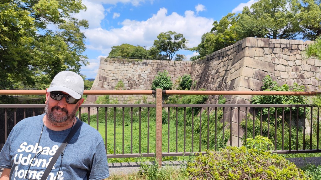 Animados por nuestro gran dominio de la red de transporte público de la región (enormemente facilitado por google maps, aunque seguimos dudando de si no nos habremos colado sin pagar en el tren de ida) nos hemos plantado en Osaka a última hora de la mañana (sí, ya lo se, no somos turistas madrugadores) con intención de ver el castillo de la ciudad primero y después irnos a la zona que tenía yo localizada. El castillo no ha estado mal, aunque de castillo antiguo sólo le quedan las murallas. La torre central es de 1931 (la han reconstruído tres veces) y para subir a ella hay que tragarse una cola de tres cuartos de hora bajo un sol implacable. Y lo único que sacas a cambio son unas bonitas vistas. No muy recomendable…