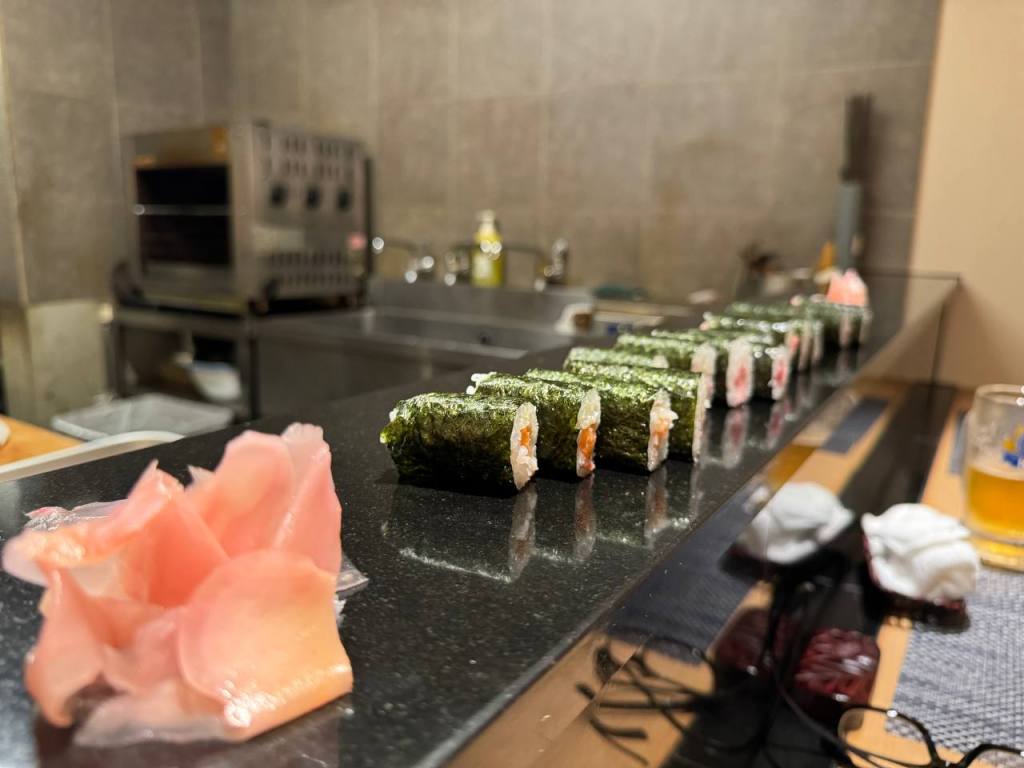 Sin más incidentes hemos vuelto a Kyoto, agotados pero contentos. La cena ha sido en un tugurio de sushi oculto, cerca del hotel, de los de comer en la barra viendo cómo el cocinero ensarta pececillos vivos antes de meterlos (aún coleando) en el horno. Te ponen las piezas de sushi directamente en la barra delante de tí, que queda como muy étnico. Bastante bueno.